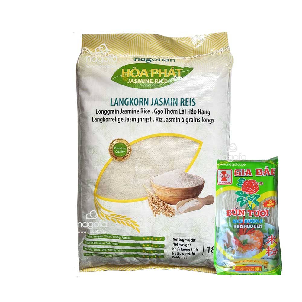 SET Reis+Nudeln: Hoa Phat Langkorn Jasmin Reis mit 500g Reisnudeln zum Probierenpreis