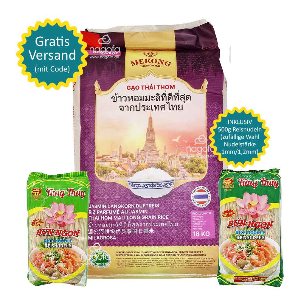 SET Reis+Nudeln: Thai Hom Mali Premium Jasmin Duftreis mit 500g Reisnudeln zum Probierpreis