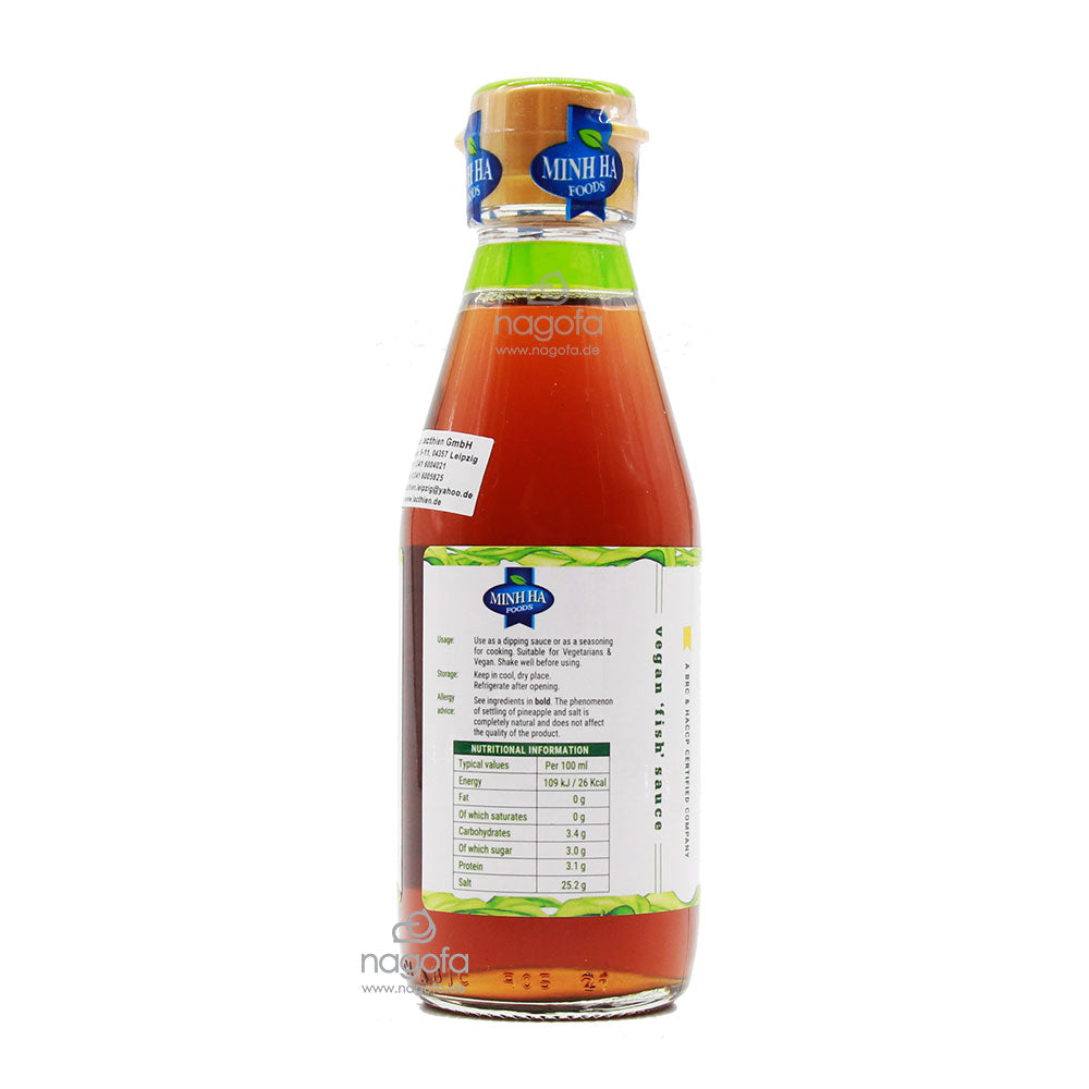 Vegane 'Fisch'sauce Nhat Tam wird aus 100 % natürlichen Zutaten mit gesunden Inhaltsstoffen wie japanische Seetang-Extrakten und Stevia hergestellt, um den Geschmack reichhaltig, rein und köstlich zu machen. Die 'Fisch'sauce soll kühl, trocken und lichtgeschützt gelagert werden. Nach dem Öffnen möglich kalt aufbewahren.
